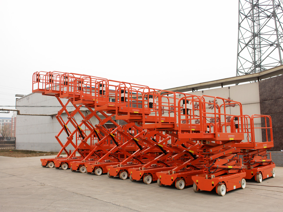 剪叉自行走式升降平台,机动性强,工作范围大,如公路交通、路灯照明、工程抢险等。它的动力可以使用汽车发动机或者直流电池、使用安全可靠。